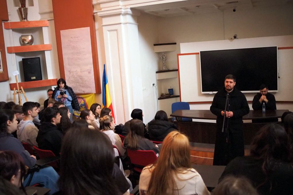 În sala de festivități a liceului, părintele profesor Petru Cernat a ținut conferința intitulată „Darul vieții – Taină și adevăr”. Acesta le-a vorbit elevilor despre miracolul existenței și despre momentul în care începe viața omului. Expunerea sa a îmbinat argumente științifice, teologice și filosofice, subliniind unicitatea fiecărei ființe umane încă din prima clipă a existenței sale. Părintele Cernat a explicat etapele dezvoltării intrauterine, punând în evidență complexitatea acestui proces și valoarea fiecărui suflet.