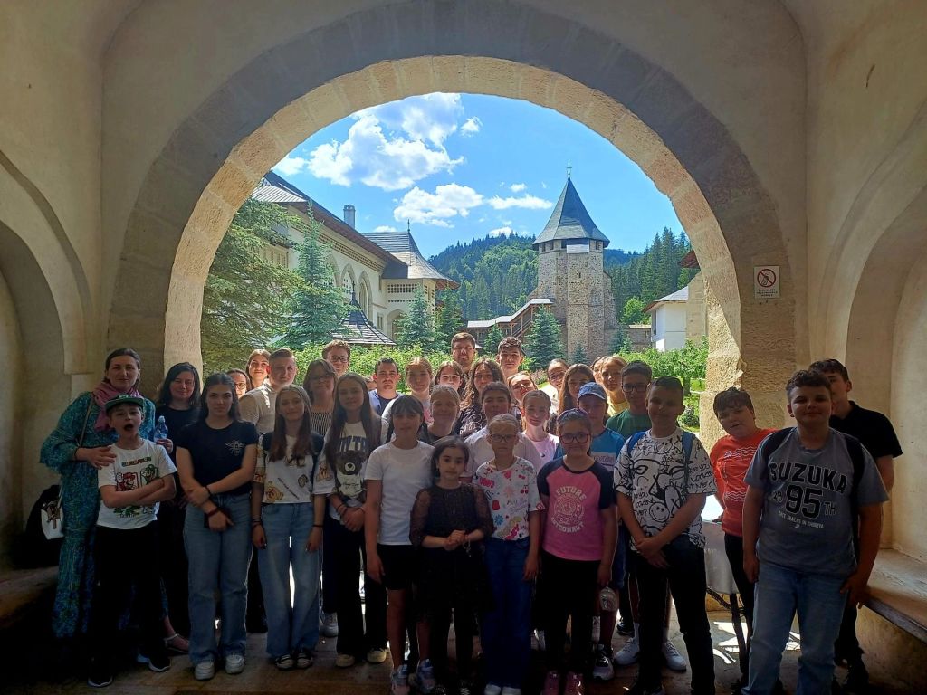 În dimineaţa zilei de 5 iunie, elevii şi profesorii coordonatori au făcut o călătorie spirituală de neuitat. Mănăstirea Gorovei a fost primul popas. Aşezământul monahal, ascuns într-un loc de poveste, este ocrotit de Sfântul Proroc Ioan Botezătorul. Am sosit aici în timpul Sfintei Liturghii. Am păşit cu discreţie, fără să deranjăm. Ne-am rugat la icoana făcătoare de minuni a Sfântului Proroc pentru toţi cei dragi, purtându-i în gândurile noastre curate. Parfumul de tămâie ne-a îmbălsămat sufletele cu putere sfinţitoare încă de la începutul acestei călătorii. Privirile copiilor s-au îndreptat către icoana făcătoare de minuni a Sfântului Ioan Botezătorul, zugrăvit în chipul unui înger cu aripi strânse, binecuvântând cu mâna dreaptă şi purtând în cea stângă un filacteriu.