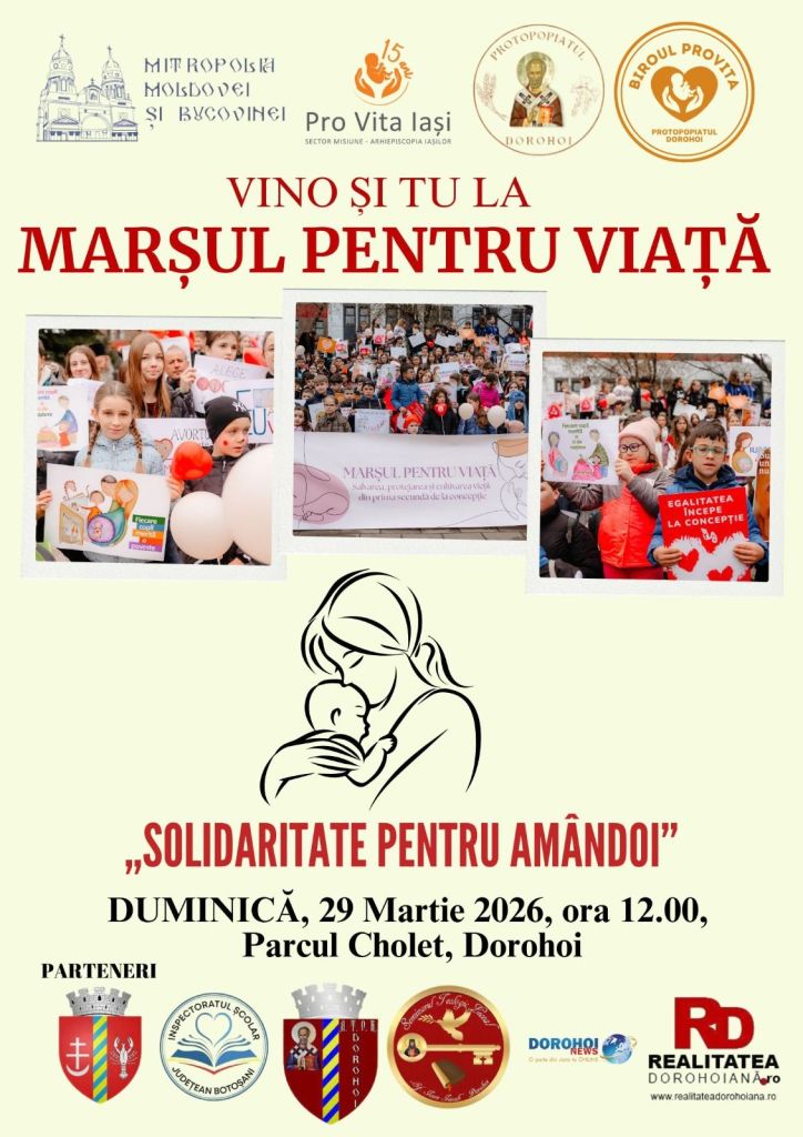 Marșul pentru viață – Dorohoi 2026 Partajează asta: Partajează pe Facebook(Se deschide într-o fereastră nouă) Facebook Partajează prin WhatsApp(Se deschide într-o fereastră nouă) WhatsApp Trimite unui prieten un email cu o legătură(Se deschide într-o fereastră nouă) Email Imprimare(Se deschide într-o fereastră nouă) Imprimare Apreciază Încarc... Similare